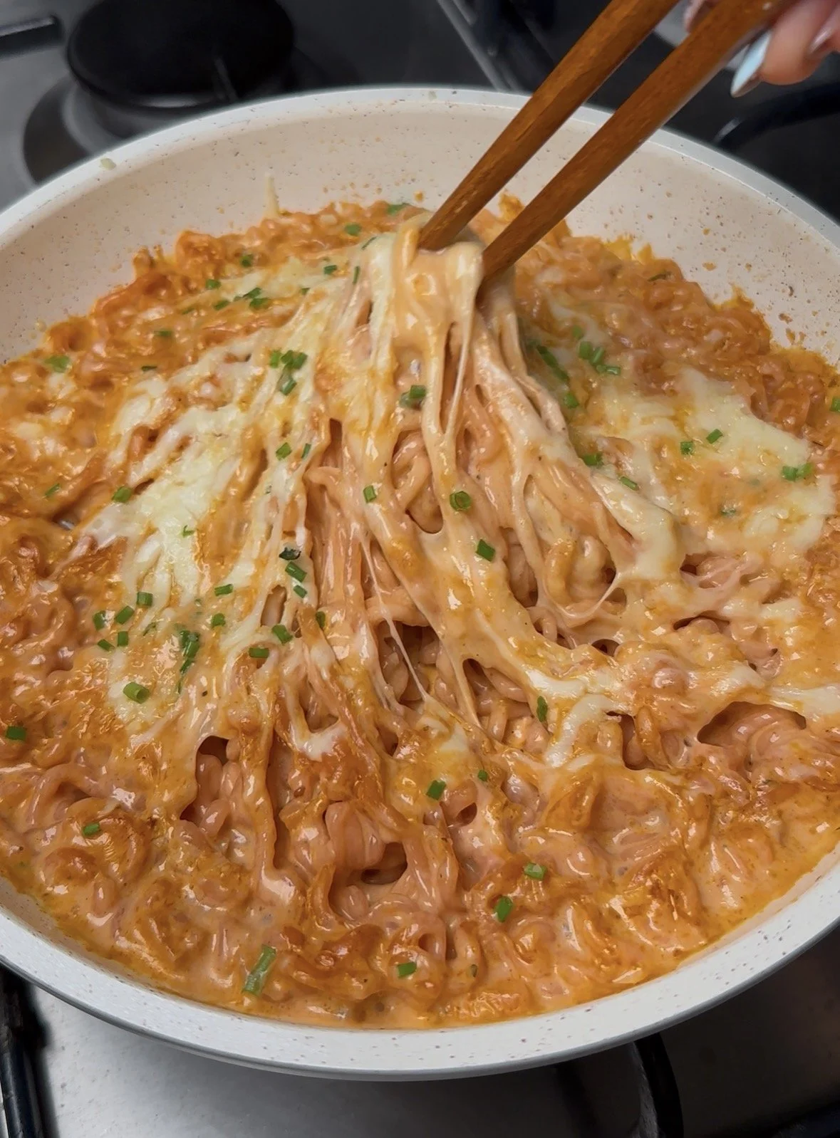 In just 10 minutes, simple pantry ingredients come together to create a silky, flavour-packed broth that clings to every strand of noodle. Think sautéed garlic, tomato paste for depth, a splash of cream for indulgence, and melted mozzarella for that irresistible cheesy pull. Finished with fresh chives and a crack of black pepper, it’s cosy, indulgent, and wildly satisfying without being heavy.