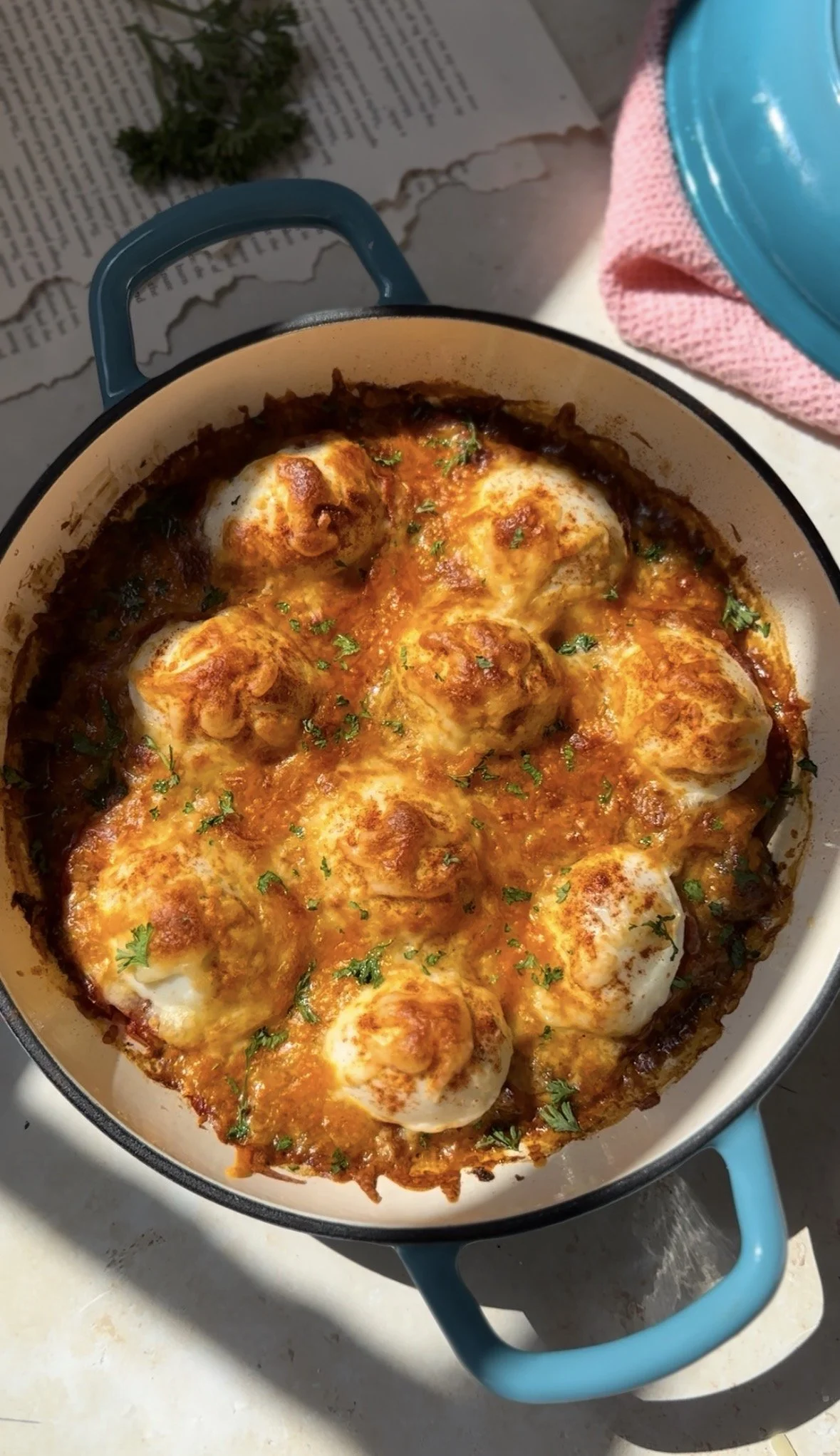 If you like a crispy cheese top I recommend grilling the eggs in the oven for 8min once you add the mozzarella cheese.
